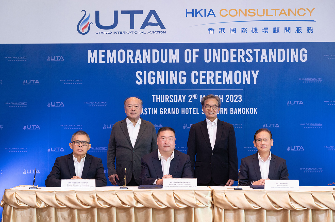 Witnessed by Mr So and Keeree Kanjanapas, Executive Chairman of UTA, the MoU was signed by Simon Li, Project Director of HKIA Consultancy, Kavin Kanjanapas, Director of UTA and Pradit Theekakul, Director of UTA in Bangkok.